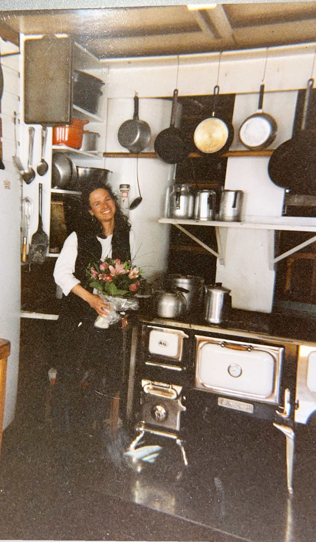 The “top-of-the-world” views were exhilarating, but my drive for — ahem — peak experiences came at a cost. Crafting meals for 40 guests and staff meant early mornings and sticky dough, slimy squash innards, and chopping onions that brought tears. Before every pot of squash soup or tray of cinnamon buns came some chaos: garlic skins, carrot peels, maple syrup caramelized on cake pans, and endless bowls to scrub. And at this off-grid lodge, even cleaning was a process — hot water came from a spring-powered wheel heated by solar energy, and food scraps were hauled to Oink and Boink, two muddy pigs, our resident composters, living their best life in a messy pigpen paradise beneath glacier-tipped peaks.
