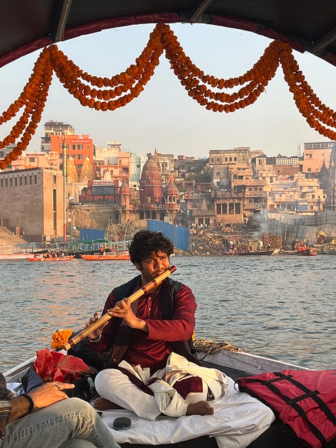 I’m a Vipassana meditator; I’ve sat multiple ten-day silent retreats and served for months at a Tibetan Mahayana center. The idea of being in places like Bodh Gaya—where the Buddha is said to have awakened under the Bodhi tree—and Varanasi, the city of ghats on the Ganges, the misty tea plantation hill stations of Munnar in Kerala… it felt like the right kind of medicine for me.